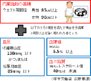 1)血中脂質異常、2)高血圧、3)高血糖の3項目のうち2つ以上に