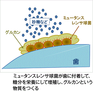 通常、口の中には様々な種類の細菌が数多く住んでいます。この中にはむし歯や歯周病の病原菌も含まれています。特にむし歯の病原菌としては、ミュータンス菌といわれるものがよく知られています。